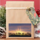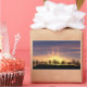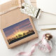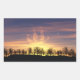 Hinter den Silhouetten eines barfußlosen Wintertresors segelt ein Phantom-Schiff durch die Wolken eines Sonnenuntergangshimchs.