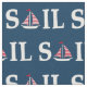 Sail Text Design Illustration mit Segelbootdekoration auf dunkelblauem Hintergrund. Es ist möglich, die Hintergrundfarbe zu ändern und das Design mit Ihrer Wahl zu ergänzen.