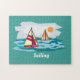 Segelschiff Segelboot Design Jigsaw Puzzle mit anpassbarer Hintergrundfarbe und Text. Ideal für Segelbegeisterte!