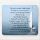 Segelboot auf ruhigem Meerwasser mit dem inspirierenden Vers eines Seglers. Der Text kann geändert werden.