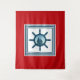 Nautisches Design mit Segelszene-Dekoration in gestreiften Quadraten auf rotem Hintergrund