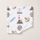 Segeltuch in verschiedenen Größen von Segelbooten, Leuchtturm, Anker, Schiffsrad und AHOY! Typografie in bunten Details auf weißem Hintergrund.