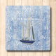 Diese nautische Themenuhr kann mit eigenem Namen oder anderem Text personalisiert werden. Regal aussehendes Segelboot in Marineblau und weiß auf einem blauen grunen Hintergrund mit weißen römischen Ziffern. Ihre Wahl oder Rundung in zwei Größen oder Quadrat. Teilweise mit Kunst von Angela Wenke auf resaleclipart.com geschaffen