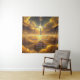 Goldenes Kreuz zwischen hellen goldenen Wolken mit Typografie-Design.
