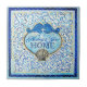 Blaue u. weiße kleine als Badezimmer-/Küchenfliese oder als Untersetzer verwendet zu werden Keramik-Fliese. Inscri [ption: "Segen zu Ihrem Zuhause" (Vorlage verfügbar)