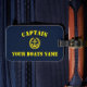 Ein Segelanker-Motiv in blau und gelb für den Kapitän, dem der Name des Schiffes hinzugefügt wird.