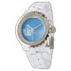 Weibliche Kristall-Emailuhr mit einem Bild einer blassblauen und weißen Menorah überragt mit einem David-Stern auf grungelblau. Siehe dazu passende quadratische Taste, quadratischer Charme und rechteckiger, doppelseitig bedruckter Acryl-Schlüsselanhänger. Sehen Sie sich die gesamte Hanukka Watch-Sammlung unter der Rubrik ACCESSORIES im Bereich HOLIDAYS an.