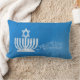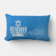 21" x 13" Lumbalkissen mit einem Bild einer blassblauen und weißen Menorah überragt mit einem Stern von David auf blauem Grunge. Blaues Grunge zurück. Siehe passendes 12" x 16" Akzent Kissen. Sehen Sie sich die gesamte Hanukkah Kissen Kollektion unter der ZUHAUSE-Kategorie im Bereich HOLIDAYS an.