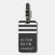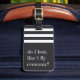 Mit diesen niedlichen und lustigen Gepäckanhängern können Sie Ihren häufigen Flyer beweisen. Design enthält das Zitat "Sehe ich aus, als fliege ich eine Wirtschaft?" in weißer Schrift auf einem gestreiften Hintergrund. Personalisieren Sie den Rücken mit Ihren Kontaktdaten.