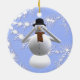 Jeder Schneemann trägt einen schwarzen Hut, hat zwei große blaue Augen, eine orange Karottennase und dünne Zweige für Lippen. Ein roter und grüner gemusterter Schal wird um seinen Hals eingewickelt. Drei graue Knöpfe laufen hinunter seinen großen Kreiskörper. Die Arme werden über das Gesicht des Schneemanns mit jeder Hand in Position gebracht, die fünf Stellen hat, entweder seine Ohren, Augen oder Mund zu bedecken.