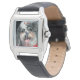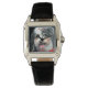 Schöne Damen quadratische Uhr mit schwarzer Lederband, niedlicher Hund K-Cee Foto, K-Cee Time. Entwerfen Sie Ihre eigene Zeitschrift oder Ihr persönliches Geschenk mit Ihrem eigenen Foto oder Text, und machen Sie sich ein Geschenk für die Mama zum Muttertag oder zu jeder Zeit.