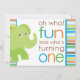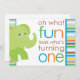 Oh, was für ein Spaß - schauen Sie, wer sich umdreht! Ideal für einen Dschungel- oder Zooaufenthalt zum ersten Geburtstag, dieser süße grüne Elefant verkündet den großen Tag Ihres Kleinen!