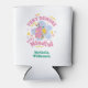 SEHR DEMURE SEHR MINDFUL Floral Well-Being Can Cooler, beliebt durch trendige Meme. Design zeigt fett rosa Typografie, mit halbem Gehirn, halbem Bouquet plus Blume und Wimpern. Matching Geschenke verfügbar.