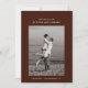Die rett-the-date-Fotokarte verfügt über einen Single, zentriert Foto des Paares. Über dem Foto werden ihre Namen in einem modernen, sauberen Schriftart angezeigt. Unten finden Sie das Datum und die Lage der Hochzeit. Das Design ist minimalistisch, mit viel weißem Raum, der sich auf Einfachheit und Eleganz konzentriert.