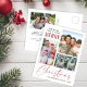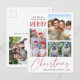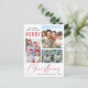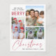 Moderne Urlaubspostkarte mit einer 3-Bild-Collage, "We Wish You A Very Merry Christmas" in Verbindung mit einfacher Typografie und einem eleganten roten Drehbuch, und Ihrem Namen und dem Jahr. Fügen Sie ein 4. Foto und Ihre personalisierte Nachricht auf der Rückseite ein.