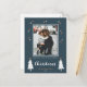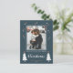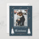 Moderne Weihnachts-Foto-Weihnachtskarte mit niedlichen Doodle-Bäumen und Sternen und einem Text "Herzlich Willkommen zu Weihnachten". Das Wort Weihnachten ist Set in einem skurrilen, handgeschriebenen Schriftart. Personalisieren Sie diese Weihnachts-Postkarte mit Ihrem Foto und Familiennamen.