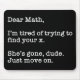 Liebe Mathe, ich habe es satt zu versuchen, Ihr X zu finden. Sie ist verschwunden, Typ. Geh einfach weiter. Dieses lustige Angebot würde ein großartiges Geschenk für einen Mathematik- oder Algebra-Lehrer oder -Schüler machen. Tragen Sie das zu Ihrer nächsten Mathematik- oder Algebra-Klasse und lassen Sie Ihre Freunde lachen! Ideal für einen Mathe-Geek, der Witze und Spaß Lieben macht. Tragen Sie es, während Sie Ihre Mathematik oder Algebra-Hausaufgaben machen, wenn Sie versuchen, die x und y-Variablen einer Gleichung zu finden.
