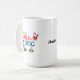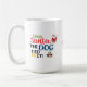 Erleben Sie Weihnachten mit dieser lustigen und einfachen Tasse. Die Vorderseite hat die Phrase 'Lieber Weihnachten Der Hund hat es getan' in grüner, roter, schwarzer und blauer Typografie. Es gibt auch humorvolle Illustrationen des Weihnachtsmannes und eines Welpen. Die Rückseite der Tasse hat ein altes Bild von dem Weihnachtsmann, der ein Bier trinkt. Die Mitte der Tasse hat einen Namen, der für Sie oder für die Person, der Sie es geben, personalisiert sein kann.