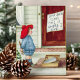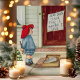Schöne Weihnachtspostkarte des Jahrgangs. "Lieber Weihnachtsmann, hier wohne ich" geschrieben auf einer Notiz an der Tür. Dieses Design zeigt ein liebenswertes Kind, das einen Brief an den Weihnachtsmann an seine Haustür schickt.