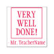 Dieses inspirierende Gummi-Briefmarke-Design beinhaltet die Nachricht "SEHR GUT GEHEN!" und den Namen eines Lehrers oder Lehrers. Es könnte von einem Lehrer oder Erzieher verwendet werden, wenn sie Aufgaben markieren, um anzuerkennen, dass der Schüler gut abgeschnitten hat.