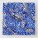 Sehr raue Silberflecken auf der blau-gesprenkelten Quadratische Wanduhr