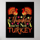 Das ist ein lustiges Erntedank-Truthahn-Poster. Das Design umfasst zwei Truthühner und die Worte "Sei dankbar, du bist keine Türkei".