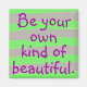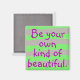 Dieser Magnet wird auf einem handgemalten grauen und floreszent grünen Streifen Muster hergestellt. Und es steht: "Sei deine eigene Art von Schönheit." Perfekte Ermutigung für sich selbst oder geben als Geschenk.