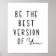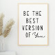 Dieses Design setzt sich zusammen aus dem Satz "Be The Best Version of You", einer Typografie Poster Wandkunst, die ein sauberes und modernes Design bietet, das perfekt für die Aufhellung und das Hinzufügen einer Persönlichkeit zu jedem Raum ist. Dieser hübsche Ausdruck kann durch das Hinzufügen eines eigenen Textes und das Ändern der Farbgebung weiter personalisiert werden. Dieses Design hat ein modernes Ambiente und würde in einem modernen Apartment oder Loft Platz gut aussehen.