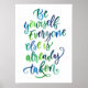 Das Zitat "Sei du selbst. Jeder andere ist bereits getroffen." Handschrift in reicher Blues und Grün.