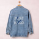 Sei einfach freundlich weiß, blaue Script Typograf Jeansjacke