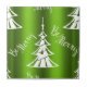 Eine farbenfrohe grün-weiße Weihnachtsfliese mit einem zeitgenössischen weißen Weihnachtsbaum auf metallisch grünem Hintergrund, mit dem festlichen Weihnachtsgrüßen von "Be Merry".