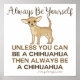 "Sei immer du selbst. Wenn du nicht ein Chihuahua sein kannst, dann sei immer ein Chihuahua". Dieses lustige Sprichwort mit einem hellbeige / braun chihuahua Hund zeichnend Grafik.
