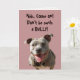 Die Nachricht auf der Vorderseite dieser Karte sagt: "Ahh, komm schon! Sei nicht so ein BULD!" In ihm steht: "Hat Ihnen niemand gesagt, dass "gute" Patienten schneller gesund werden? Benehmen Sie sich also und werden Sie bald wieder gesund!" Diese unglaublich witzig "get well card" verfügt über einen schönen Pitbull namens Sarge. Sarge ist in einer Sitzposition, die sehr glücklich aussieht, und warte für ihn einen weiteren Stock. Er hat ein kleines Stück trockenes Gras, das aus seinem Mund klebt, seine Ohren sind ein wenig geneigt, während er Sie anschaut, mit seinem Mund in ein Lächeln gezogen und seine Zunge wackelt. Eine wunderbar komische Karte für alle.