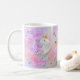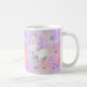 Sehr hübsche Tasse mit rosa Einhornmotiven mit farbigen Tönen und Regenbögen. Personalisieren Sie mit Ihrem eigenen Namen und einer speziellen Nachricht.