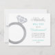 Die personalisierte Einladung zur Bridesmaid-Karte "Will you be my bridesmaid" ist mit einem Diamant Platin-Verlobung-Ringdesign mit einem glitzernden Glitzer-Look und einem hübschen Aqua-Blau- und Platin-Graufarbschema ausgestattet, das individuell angepasst werden kann. Kleine Schweizer Punkte ziehen die Rückseite der Karte hoch.