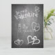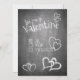 Valentinsgrün im Kreidetafel Stil mit Herz und handGrüßen im Kreidelook auf der Vorderseite der Karte. Restliche zur freien Verfügung.