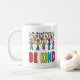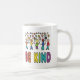 Sei Kind Design besteht aus einer gemischten Gruppe von vielen Leuten über der Nachricht "Sei Kind" in Regenbogenfarben. Ein ethnisch vielfältiges Bild, um Freundlichkeit unter allen Menschen zu suggerieren und zu unterstützen.
