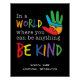 Ein kraftvolles und trendiges motivierend Typografie-Design mit dem Zitat "In einer Welt, in der man alles sein kann, Sei nett" in Regenbogenfarben mit einer mehrfarbigen Puzzle Handillustrierung.