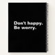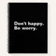 Sei nicht glücklich. Seien Sie beunruhigt. komisch Notizbuch