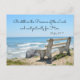 Schöne inspirierende Zitat benutzerdefinierte Postkarte zeigt eine Bank am Strand mit Blick auf den Ozean und zeigt Bible Verse Psalm 37:7, Sei noch in der Gegenwart des Herrn, und warten geduldig auf Ihn. Das hintere Grußgebet kann für eine leere Karte modifiziert oder gelöscht werden._