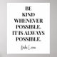 Es ist einfach, uns selbst Ausreden zu machen, aber wir können wirklich, wirklich immer freundlich sein. Manchmal fühlen wir uns vielleicht müde oder traurig und sind nicht so freundlich, aber trotzdem...Freundlichkeit ist immer eine Möglichkeit. Sei nett! Sei so freundlich wie möglich. Es ist immer möglich - Dalai Lama