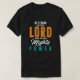 Dieses Design verfügt über einen schwarzen T - Shirt mit dem Text "SEIN STRONG IN DER LORD UND IN SEINEM MIGHTY POWER" in einem stilisierten Schriftart mit mehreren Farben. Eine kleine Cross-Grafik ist im Lieferumfang enthalten.