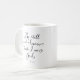 Tasse hat Schrift Vers aus Psalm 46:10, "Sei still und weiß, dass ich Gott bin" in einem lockeren handgeschriebenen Skript.