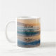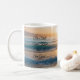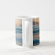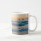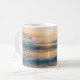 Kaffee Tasse mit Sonnenaufgang über dem Ozean und "Sei still und weiß, dass ich Gott bin" auf ihm geschrieben. KI erzeugt.