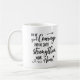 Die Tasse hat die schwarze Typografie mit dem bekannten Vers der Schrift aus Psalm 31:24, "Seid von gutem Mut und Er wird euch das Herz all eures Herzens, das ihr im Herrn erhofft habt, in einer lockeren handgeschriebenen Schrift verärgert.