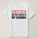 Sei vorsichtig, oder du wirst in meiner Predigt en T-Shirt