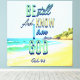 Dieses Design zeichnet sich durch modernen Text, mit einer Beachgrafik und der Bibel Vers Psalm 46:10.