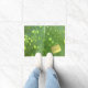 Das Kunstwerk auf diesem Doormat ist ein Originalfoto von ZoeSPEAK von Regentropfen auf einem Schefflerablatt. Das Foto zeigt die Adern des grünen Federblattes, mit zufälligen Wassertropfen, die es mit hellgelben, dreidimensionalen Highlights schmücken. Es ist ein gelber Aufkleber mit dem Wort "Willkommen" darauf. Dies ist optional. Der Text kann geändert werden, oder der gesamte Aufkleber und Text können entfernt werden, wenn Sie es vorziehen.