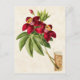 Postkarte mit digital gesäubertem und verbessertem Vintage-Bild eines Seidenbaumes mit dunkelroten Blume auf Pergamenthintergrund. Illustriert von Etienne Denisse für Flore d'Amerique, veröffentlicht in Paris, 1843.