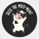 Seien Sie die lustige Kuh Puppe dunkle BG Runder Aufkleber